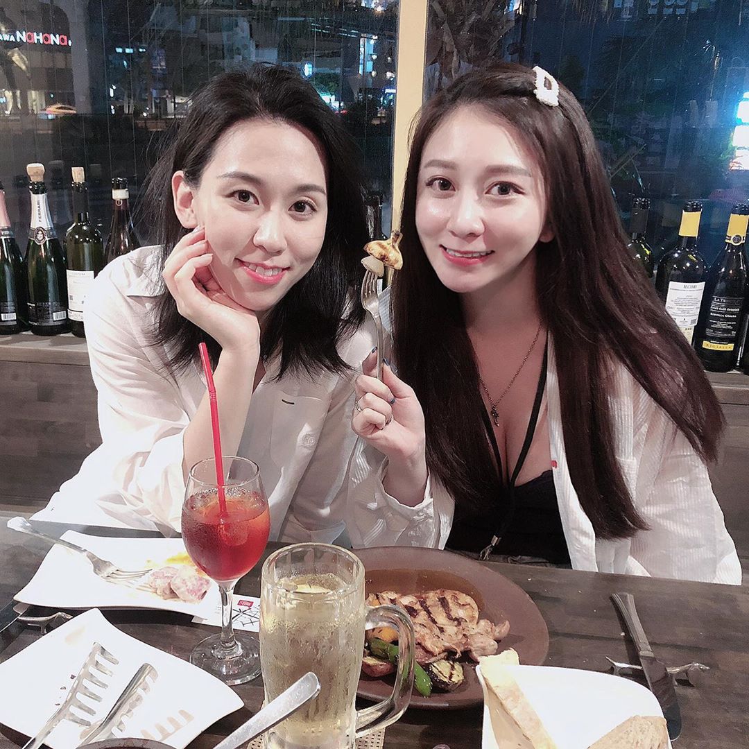 就連晚上吃飯時,也以白襯衫搭配黑色的低胸小可愛,大方露出深邃乳溝,吸睛程度程度讓同是「Twinko」成員的凱希都忍不住驚呼:「哇,穿這樣!」