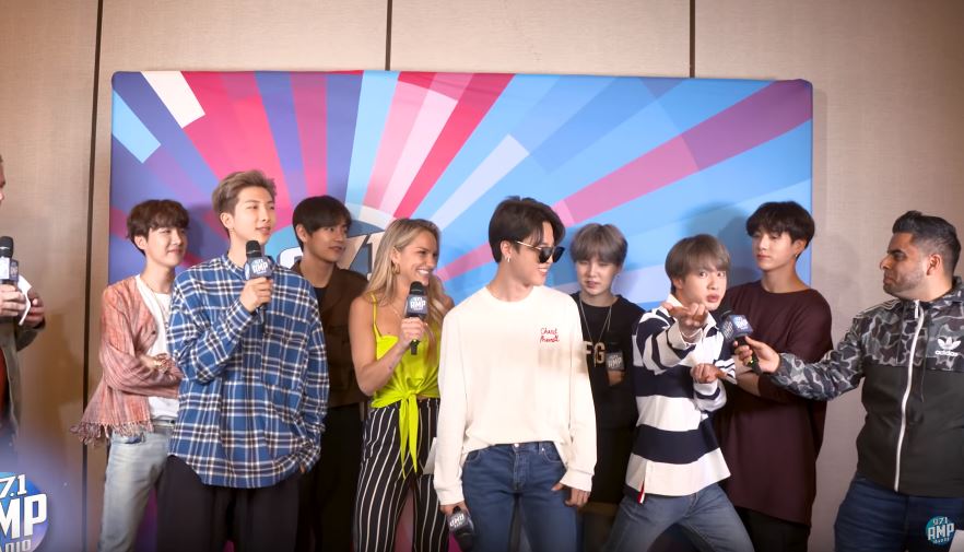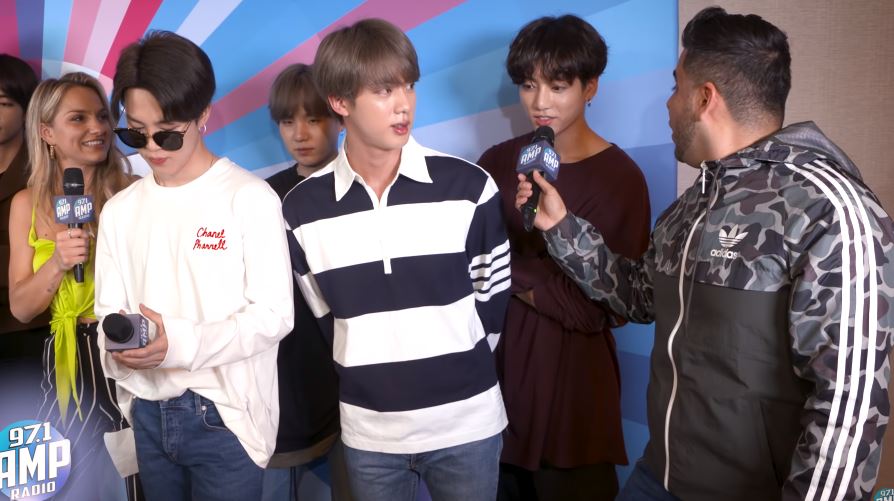 韓國男團防彈少年團上月以新專輯《MAP OF THE SEOUL: PERSONA》回歸,12日晚間又在音樂節目奪下第10個一位,不過目前BTS正於美國進行世界巡演同時錄製當地節目。10日,防彈少年團受邀美國晨間廣播節目《97.1 AMP Radio》,其中柾國罕見以全英回答問題,而眼尖的網友也發現,站在一旁的Jin以「唇語」提示柾國,互相協助的畫面讓粉絲相當感動。