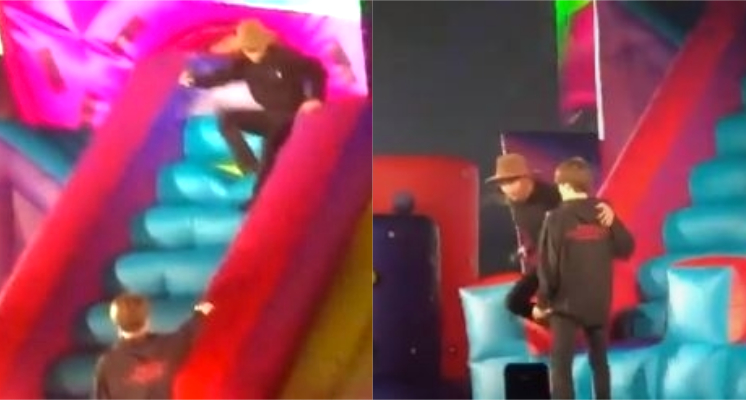 BTS美巡3度低溫又淋雨!V爬上「充氣溜滑梯」 Jimin一看嚇壞「瘋狂揮手」!