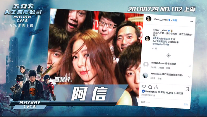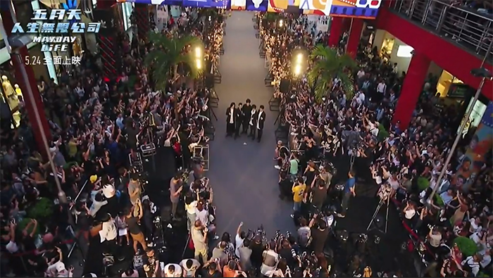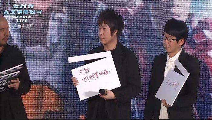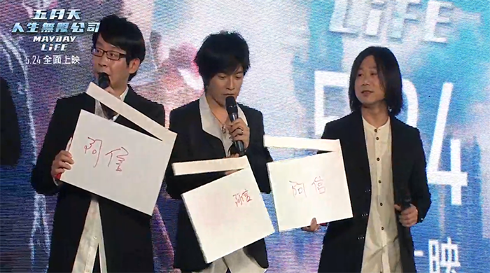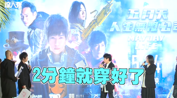 五月天3D演唱會電影《五月天人生無限公司》今(15)日晚間6點多在信義威秀舉辦首映會,現場湧入近千名歌迷到場力挺,被擠得水洩不通。除此之外,羅志祥、陳綺貞、田馥甄、周杰倫等人,都錄製了VCR輪流出考題,讓五月天們絞盡腦汁,但這答案又讓粉絲們再次笑翻!