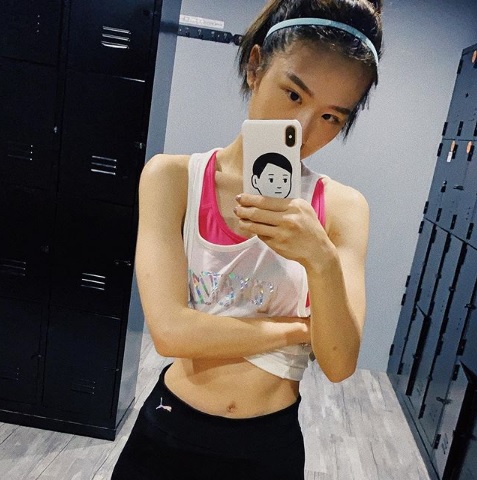 照片中的她,把頭髮綁成一個馬尾,一隻手撩起小背心自拍,手臂肌肉相當顯眼,且11字腹肌全都大方展現,成功保持「蠻腰翹臀」的體態,讓人相當驚豔。