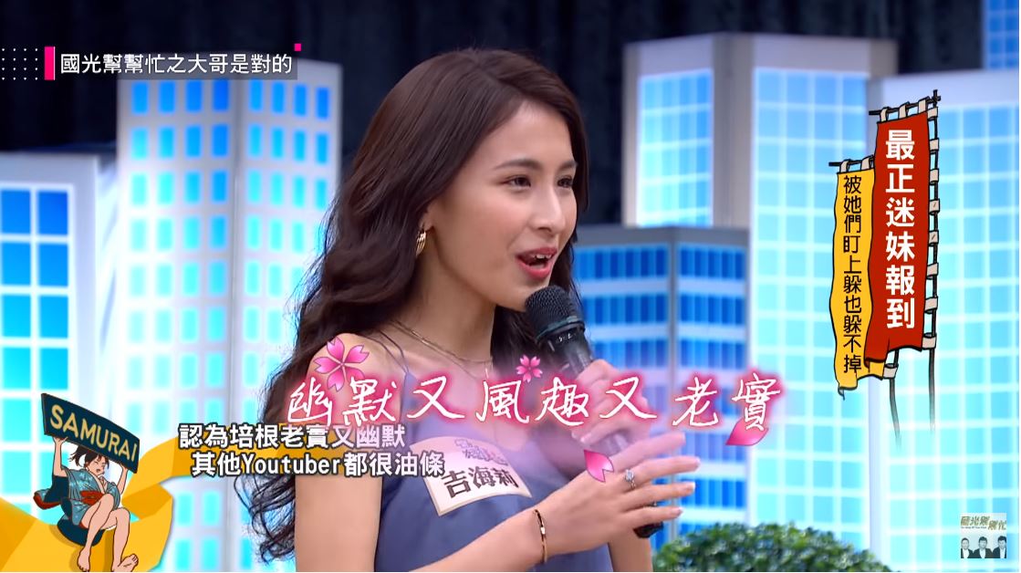 近日在電視節目《國光幫幫忙之大哥是對的》中,請來了三位知名網紅和他們的迷妹、粉絲,其中喜歡「培根」的粉絲居然是正妹「吉海莉」,讓主持人大呼「假的啦」、「不可能」、「怎麼可能」,而「培根」在看到「吉海莉」出現後則直言「這完全就是我的菜啊」喜悅之情溢於言表。