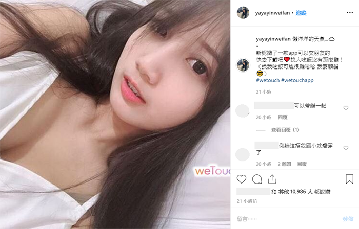 丫丫昨(15)日在IG中發文:「懶洋洋的天氣」,並且和大家介紹一款交友軟體,還俏皮表示:「找我吃飯可能很難哈哈,我要顧貓」。不過網友都將焦點放在照片中,原來這次丫丫躺在床上,瀏海微微遮住眼睛,身上則穿著白色小背心,渾圓雙峰呼之欲出,性感逼人。