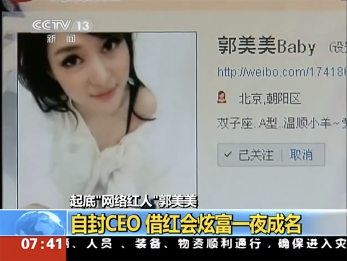 網紅郭美美過去因為多次在微博上曬出跑車、豪宅、名牌等照片而爆紅,喜愛炫富的她在當時也被網友們質疑是否動用了紅十字會的善心捐款,爆發一系列的疑雲,之後郭美美被網友起底原來是因為她被一名「王姓富商」包養,據報導指出,在雙方相識第二天就發生了關係,才19歲的她便開始對男方予取予求,誇張程度被男方形容像是「見到了鬼,誰碰到誰倒楣」,郭美美在物質上索求無度。