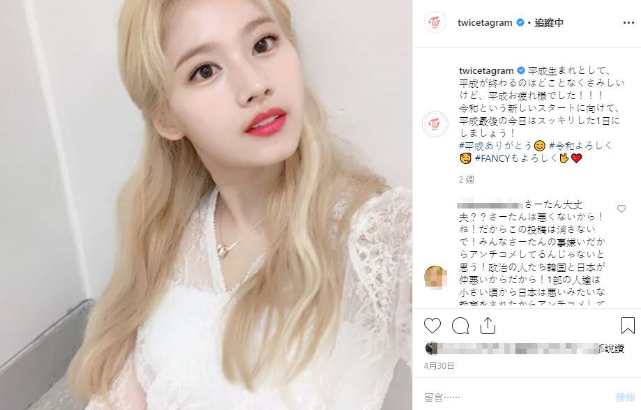 韓國女團TWICE邁入出道第4年,其中除有韓國也有來自台灣和日本的成員,但也經常為此無辜惹上政治敏感,上月底適逢日本迎向新年號「令和」,日籍成員Sana的慶賀文竟無端挑起韓網罵戰,讓TWICE罕見時隔16天才發文。16日晚間,成員子瑜終於發表更新貼文,就引起網友心疼問到「為什麼多賢的文章刪了」。