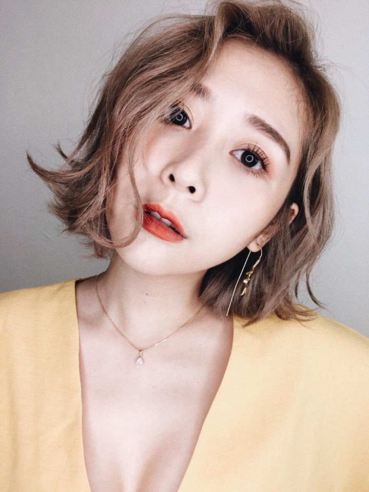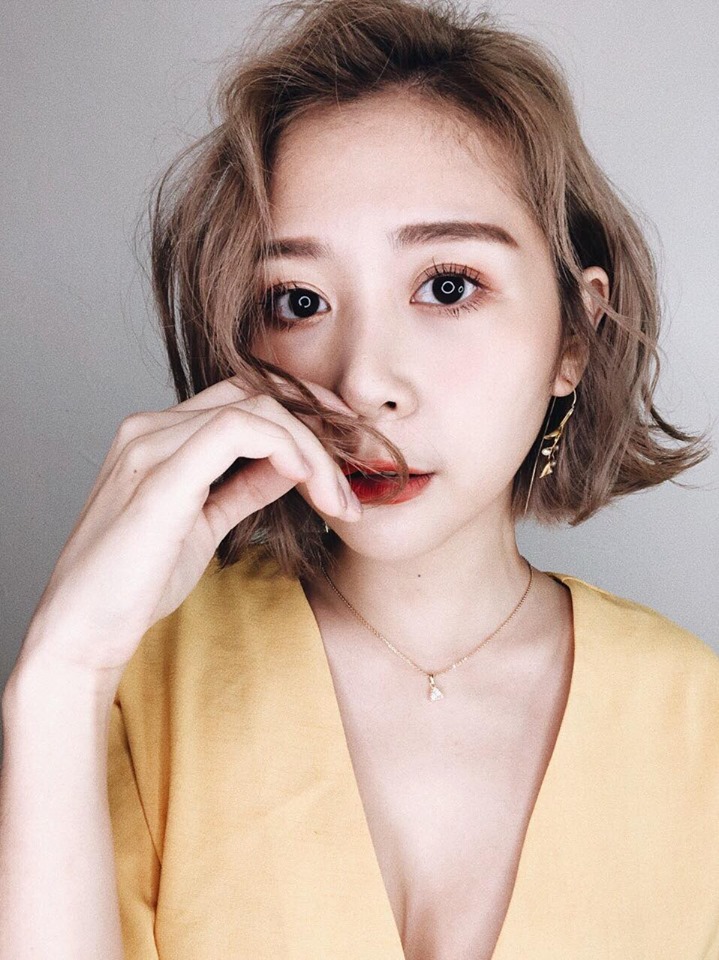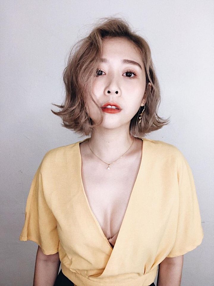 14日Albee公開新造型,這次她不但變成了捲髮,還染了新的髮色,Albee逗趣在貼文中寫著:「人生苦短必須美,這樣應該不會太美吧?」Albee頂著一頭浪漫的微捲短髮,穿著一件鵝黃色的上衣,映襯出她白皙的肌膚,只是胸前超深V的剪裁設計,讓她渾圓的東西半球大剌剌的露在外頭,甚至連膚色內衣也不小心露餡,整個人看上去性感又不失氣質。