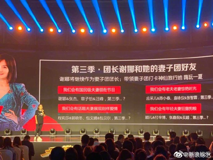 《妻子的浪漫旅行3》在上海的招商活動中宣布嘉賓陣容,謝娜以及張杰一樣為固定班底,另外四對明星夫妻分別以「國民級夫妻」、「老夫老妻」、「話題夫妻」、「年輕夫妻」為主軸。再分別以關鍵字形容詞舉例「90後新生代蜜糖夫妻」、「影視王炸夫妻新婚首秀」、「寵妻狂魔天王夫妻」和「偶像劇男神與初戀」推出的陣容,大家紛紛猜測到底是誰啊?
