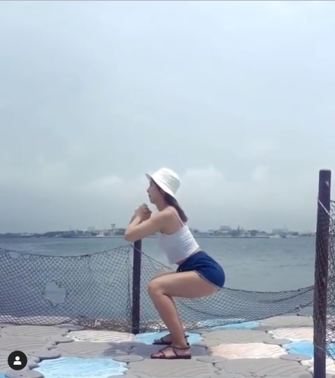 簡廷芮陸續曬出旅遊照,17日貼出一段影片並寫下:「出遊不忘運動,海上深蹲初體驗。」還要健身教練看她認真的模樣,影片中的她,穿著細肩帶白色上衣,標準做出深蹲動作,不過有網友眼尖發現,簡廷芮認真在做深蹲,鏡頭近距離拍攝時,雙下巴跑出來見客,網友直呼:「雙下巴也蹲出來了」、「下巴很可愛」、「那個雙下巴~」、「變胖了」