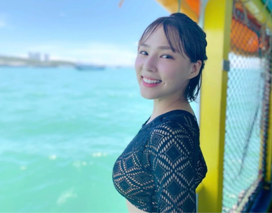 日前熊熊遠赴泰國芭達雅錄影,當時他穿著深藍色的兩截式泳裝,雖然全身包緊緊,但熊熊一側身,渾圓的胸型原形畢露,好身材一覽無遺,再加上整件泳裝都是簍空小洞的設計,性感程度爆表。