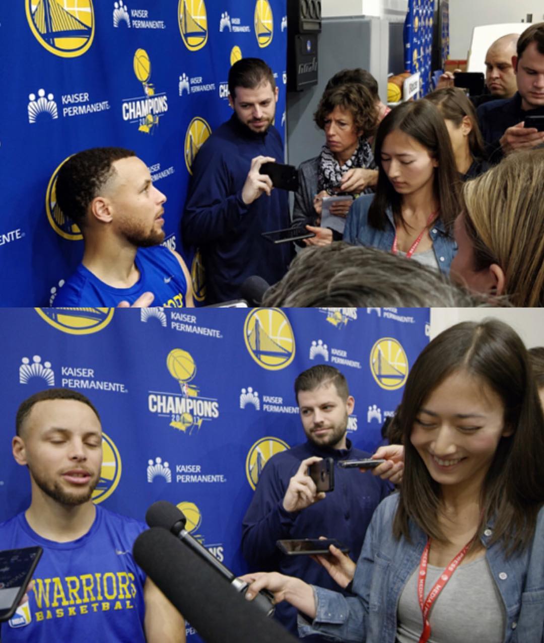 Curry受訪旁邊藏「混血女記者」!肉搜IG「全是蜜桃照」 真實身分網跪:沒追錯人!