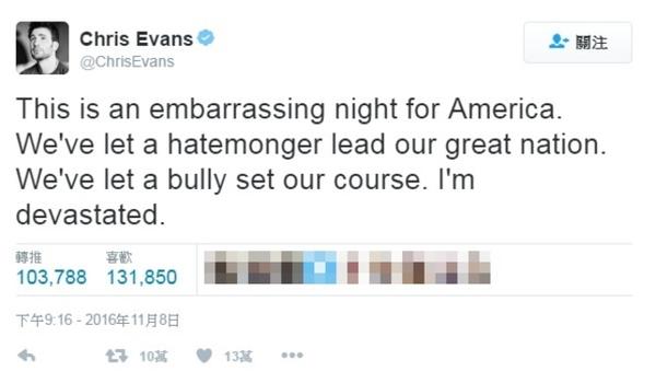 ▼男星克里斯伊凡(Chris Evans)一直以來也相當做自己,多次在推特上公開反對美國總統川普(Donald Trump),不擔心政治立場會影響自己人氣,過去也曾力挺自己同志的弟弟,為同志、女權等議題發聲,現實生活也是真正的「美國隊長」。