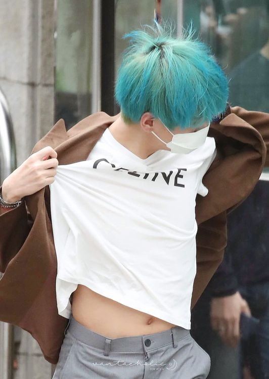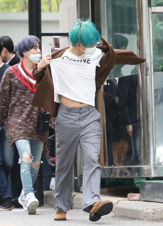 其實前陣子V在音樂節目上班的路上因為在穿外套的過程中不小心手掀起了上衣,被捕捉到他雪白的「寶寶肚」,與原先粉絲認為他會是結實腹肌的形象形成反差,壤許多粉絲大呼可愛,還有粉絲希望他可以保留「寶寶肚」,不要練腹肌。不料近日他開始與成員柾國一起健身,或許不久後他的「寶寶肚」就會消失,變成精壯的肌肉。