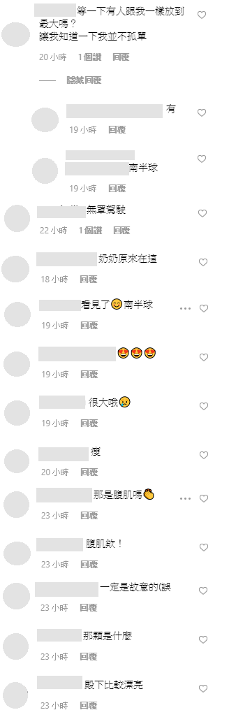 網友見狀也紛紛留言:「等一下有人跟我一樣放到最大嗎?讓我知道一下我並不孤單」、「南半球」、「無罩駕駛」、「很可以」、「奶奶原來在這」、「看見了南半球」、「殿下讓我的眼鏡閃到了」、「母湯啊!」、「很大喔」。