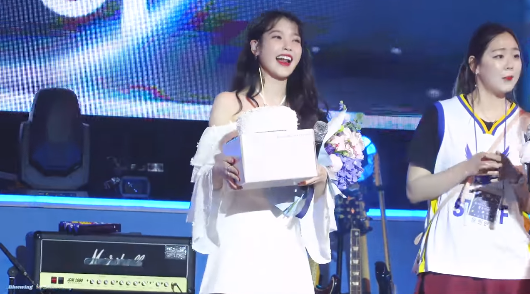 IU於17日時隔兩年在延世大學校慶活動登台,帶來多首膾炙人口的歌曲,台下的粉絲也相當熱情,其中有一幕是在表演歌曲《LEON》時,音響設備突然出現故障,而IU為了解決場面尷尬,竟然乾脆連同音樂一同定格,讓台下粉絲反而尖叫聲四起,也讓人看見IU的舞台實力,而儘管IU的生日是在16日,主辦方和粉絲仍相當貼心地為IU唱生日快樂歌,更準備了花束以及生日蛋糕。