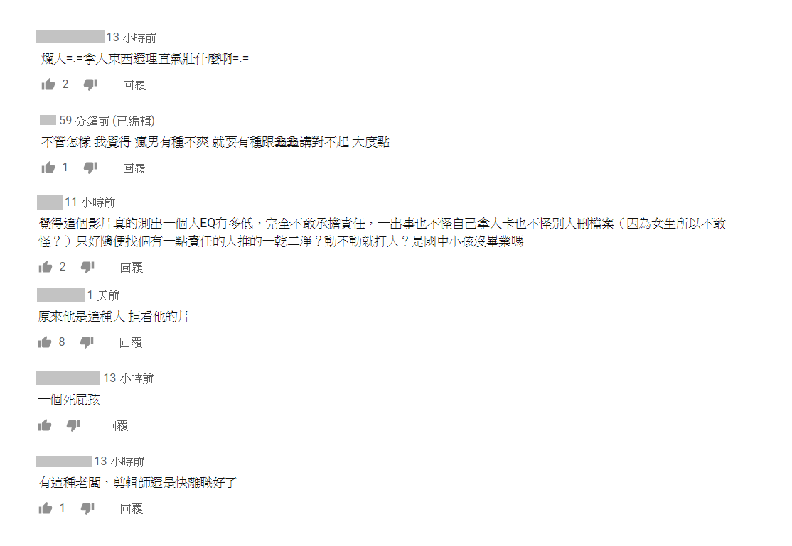 然而,原本以為只是個單純娛樂觀眾的整人影片,沒想到在影片出來後,華晨灰卻遭受到了網友們的批評和攻擊,被怒罵「爛人 拿人東西還理直氣壯什麼啊」「不管怎樣 我覺得 瘋男有種不爽 就要有種跟龜龜講對不起 大度點」「有這種老闆,剪輯師還是快離職好了」。