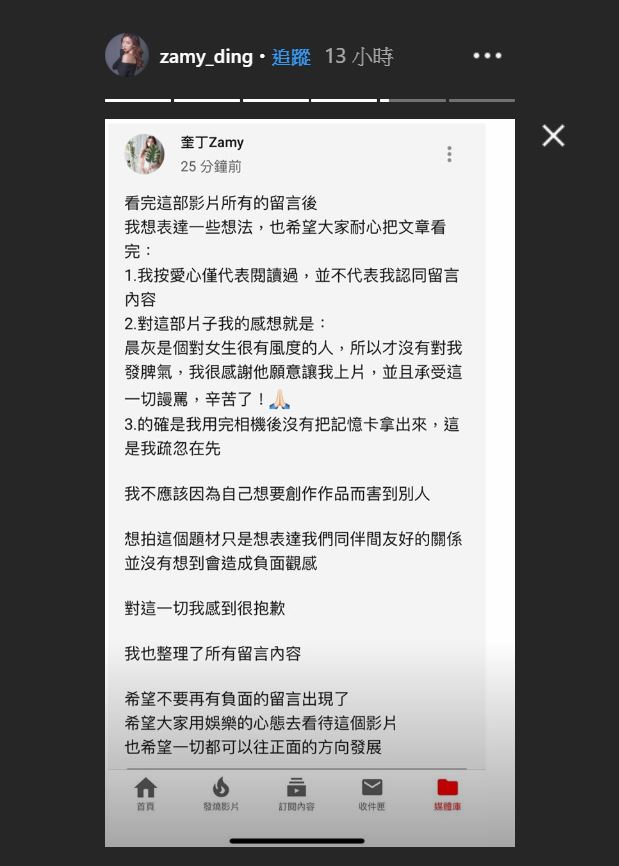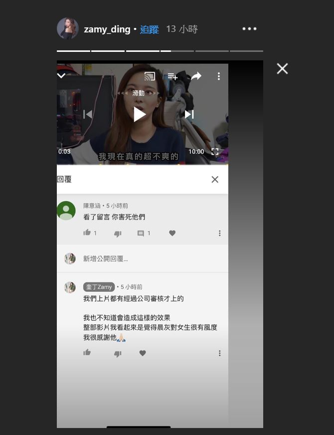 在整個影片引發的後續效應後,網友們也紛紛留言給予「奎丁」和華晨灰鼓勵,更大讚影片「蠻好笑的」,希冀整個事情能好好地落幕。
