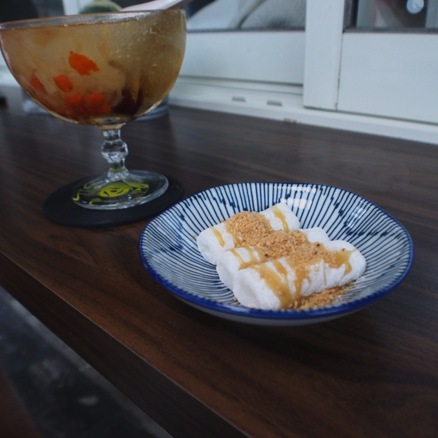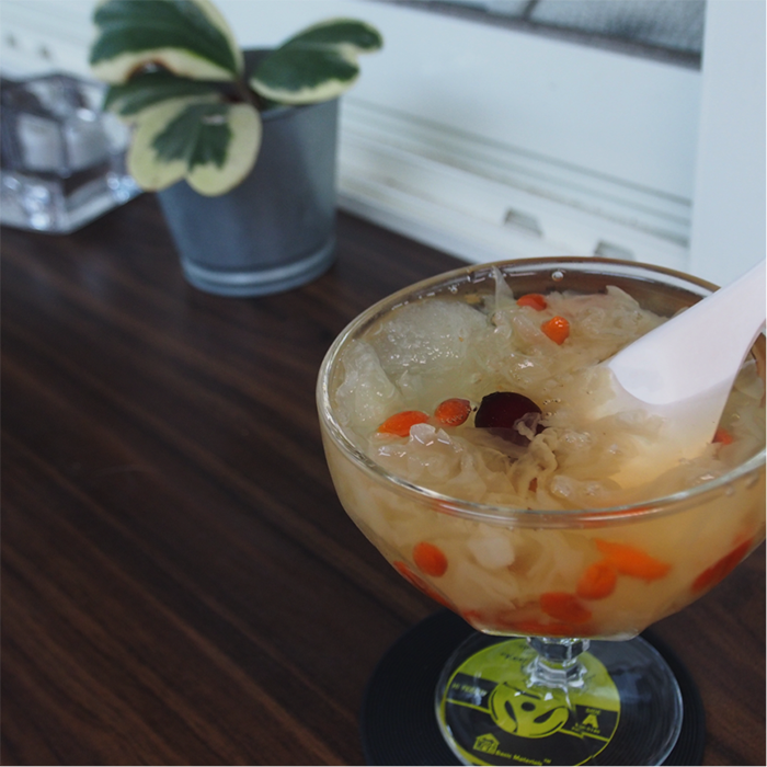 輕飲了一口,清新冰涼的溫度,伴隨著淡雅清香甜湯,白木耳一點都不白目,取而代之的,是一種厚道、謙讓,他讓口中麻糬的口感更上一層樓,讓這段“未發生”的情感有了結果,不像麻糬那麼的粘人,白木耳更像是灑脫、自信、瀟灑的滑入你的口中,不要你負責、不求你承諾,在你的生命中短暫的停留、又迅速地消逝,卻又讓你回味無窮。