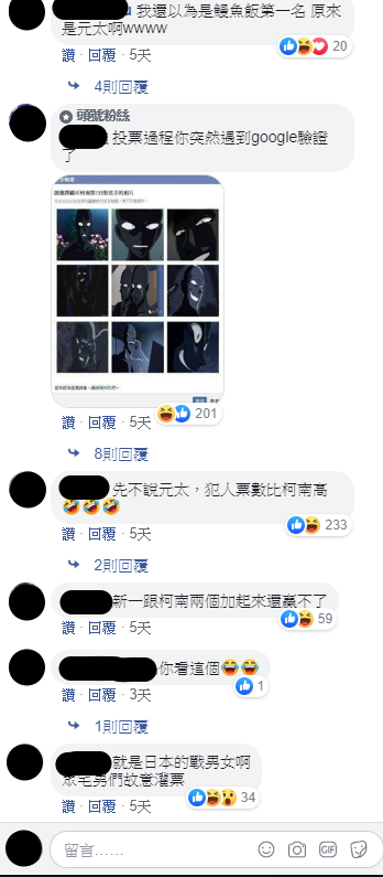 而其實一切的原因都是網友的惡搞,有另一名網友貼出店內真正的海報內容,真正的第一名是擁有超高人氣的「怪盜基德」,不過台灣網友們看到被惡搞榮登第一名的元太,也開玩笑留言表示「我還以為是鰻魚飯第一名,原來是元太啊w」、「新一跟柯南兩個加起來還贏不了」、「就是日本的戰男女啊,眾宅男們故意灌票」。