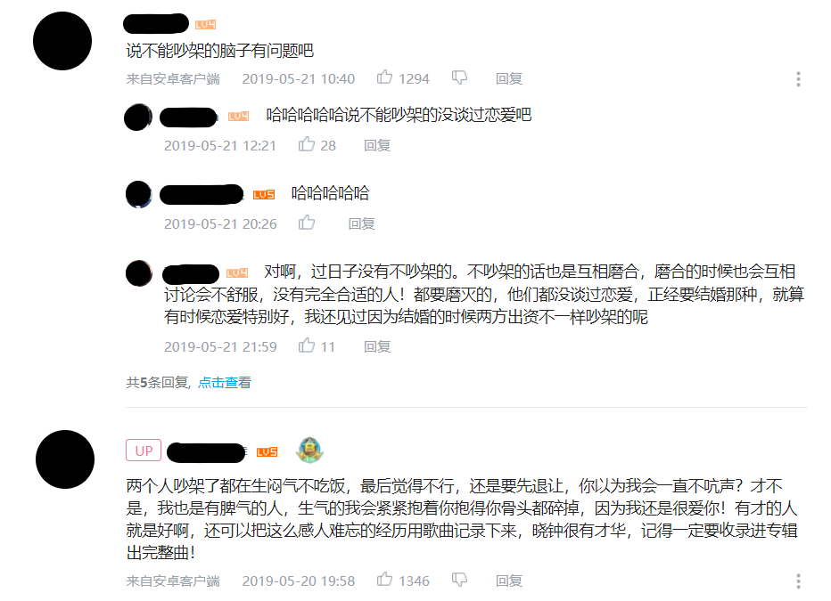 這段影片也瞬間成為網友討論的焦點,網友大讚「這歌也太好聽」、「有點像GD的聲音」、「說實話這音色我以為是權志龍唱的」、「金曉鐘真的好撩」、「好有才!吵架也變成是一種紀錄」、「太好聽了吧!一定要正式發布」,而關於一直以來給大家相當甜蜜印象的兩人,歌曲反映吵架情侶的心境,也讓網友猜測可能就是兩人私下的感情生活並表示「說不能吵架的腦子有問題吧」、「真心希望他們兩人以後可以越來越好」。