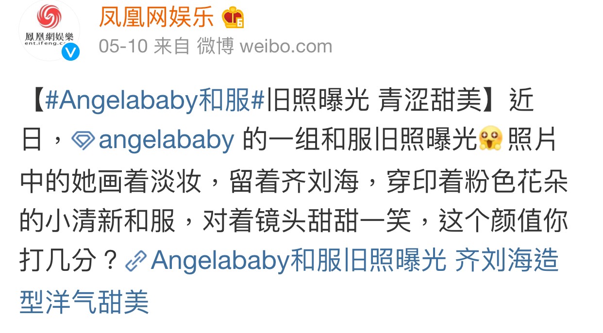 原來Angelababy於2014年以模特兒出道,在19歲的時候,遠赴日本打拼,只見她身穿印花粉色花朵的和服,留著齊劉海,紮起頭髮,臉上的妝容更是凸顯出,五官的精緻,小清新的打扮迷倒了眾人。網友看了直呼:「以前很日系」、「以前的嬰兒肥是甜美」、「她的臉從來無話可說」。