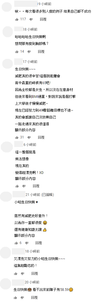 影片播出之後,許多網友紛紛留言:「唉。。每次看很多别人瘦的例子 结果自己都不成功」、「想問那有瘦到胸部嗎?」、「減肥真的很辛苦!這個我能體會」、「居然有減肥史好意外! 以為你一直都很瘦」、「這一整個就是 無法想像 現在真的 變得超漂亮啊!」,只能說小昭減肥前後真的差異很大!