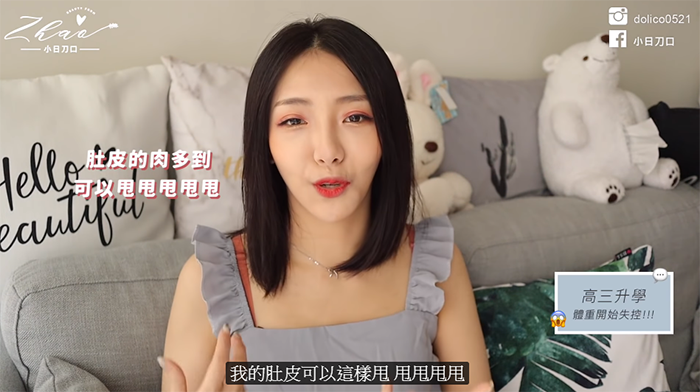 小昭表示自幾大約在高三時體重開始狂飆,因為升學壓力大,加上正餐都吃超油的便當,讓他的體重直線飆升,「那個時候我的制服一拉起來,我的肚皮可以這樣甩甩甩」,他也透露升上大學後交了第一任男友,不過因為自己當時比較胖,男友也因此被嘲笑「跟大嬸在一起」。雖然當時的男友嘗試幫助她減肥,不過後來卻適得其反,反而一路標到六十幾公斤。