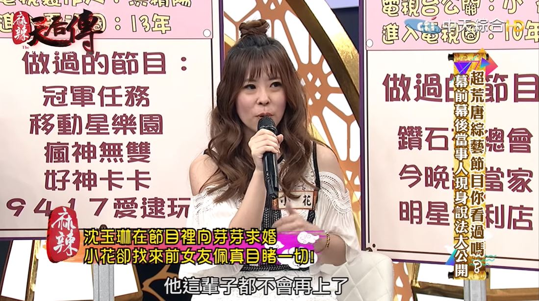 電視台的公關小花在《麻辣天后傳》透露,他曾做過某個節目惡整沈玉琳,沒想真的讓對方徹底翻臉!當時沈玉琳和芽芽準備要結婚,特地邀請玉琳哥來聊「浪子回頭」的故事,製作單位還租了婚紗把芽芽找來現場,要讓沈玉琳當場跟芽芽求婚。看似很幸福美滿的背後,他們故意找沈玉琳的前女友佩真來導播室,全程目睹這一切,連現場來賓聽了都忍不住說:「這真的太狠了…」