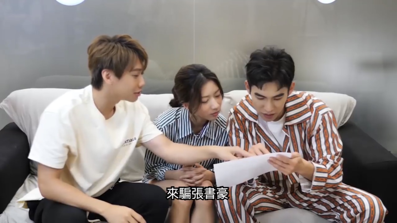 影片中張書豪講到自己在戲中有跟陳妤拍攝吻戲的畫面,在一旁扮演陳妤哥哥的尼克頓時沒有接話,製造出搞笑的氛圍,隨之又補了一句「我都很推我妹妹出去跟人家接吻」,讓陳妤聽了又好氣又好笑,而張書豪依然相信陳妤是尼克的妹妹。