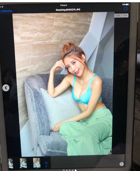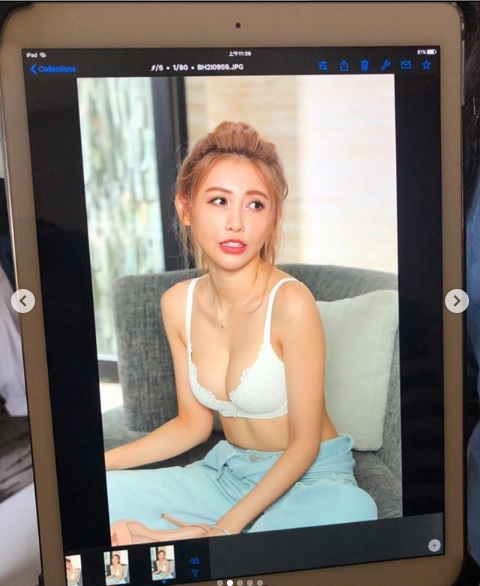 只見照片中的愷樂,換上各種不同款式的內衣,有水藍、淡藍和純白色等顏色,渾圓雪乳呼之欲出,且胸前事業線更是性感,一下對著鏡子擺出俏皮的表情,下一張的愷樂穿著內衣趴在純白的床上,大方放送「邪惡視角」,讓人看了直噴鼻血。