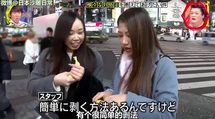 綜藝節目《Monday Lateshow(月曜から夜ふかし)》是由關8成員「村上信五」及知名主持人「貴婦松子」主持,從2013年開始就在週一深夜放送,是深受許多日本觀眾喜愛的節目,這次節目介紹到關於剝香蕉皮的方法,隨機訪問年輕路人以及爺爺奶奶們,許多人都只知道從上剝4次的方法,還有人嘗試從中間扭開,但是這都不是正確的快速剝法。
