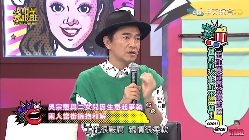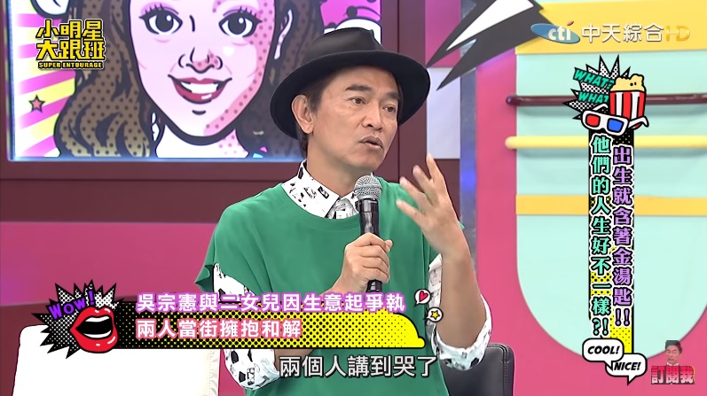 56歲「綜藝天王」吳宗憲,出道至今30多年,主持過眾多綜藝節目,育有3女1子的他,大女兒Sandy(吳姍儒)及兒子鹿希派(吳睿軒)同樣進軍演藝圈,鮮少露面的二女兒Vivian目前在吳宗憲自家公司當總經理,日前吳宗憲在節目《小明星大跟班》中透露,他和二女兒前陣子當街吵架,最後父女倆「講到哭了」抱在一起,言論一出,讓在場的來賓驚訝不已。