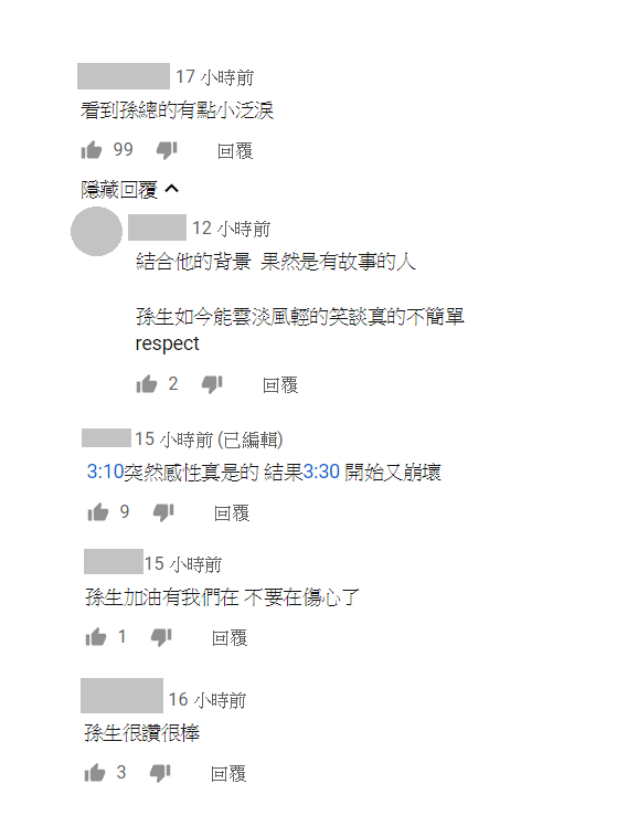 而這段真情流露也讓許多網友深受感動,紛紛留言表示「看到孫總的有點小泛淚」「孫生如今能雲淡風輕的笑談真的不簡單 respect」「孫生加油有我們在 不要再傷心了」「孫生很讚很棒」,期望著「孫生」揮別過去不開心的日子,迎向未來。
