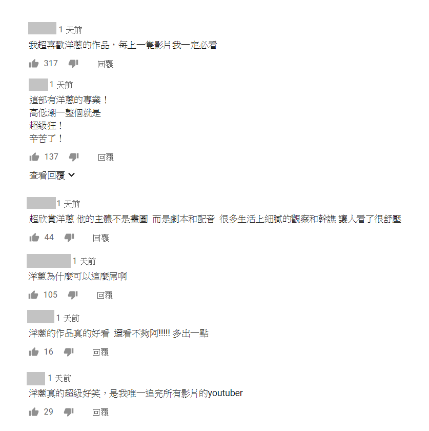 此部影片一出後,也讓許多「洋蔥」的粉絲紛紛現身給「洋蔥」加油打氣「我超喜歡洋蔥的作品,每上一隻影片我一定必看」「這部有洋蔥的專業!高低潮一整個就是超級狂!辛苦了!」「超欣賞洋蔥」「洋蔥的作品真的好看 還看不夠阿!!!!!」,可見「洋蔥」的努力終於得到回報了!