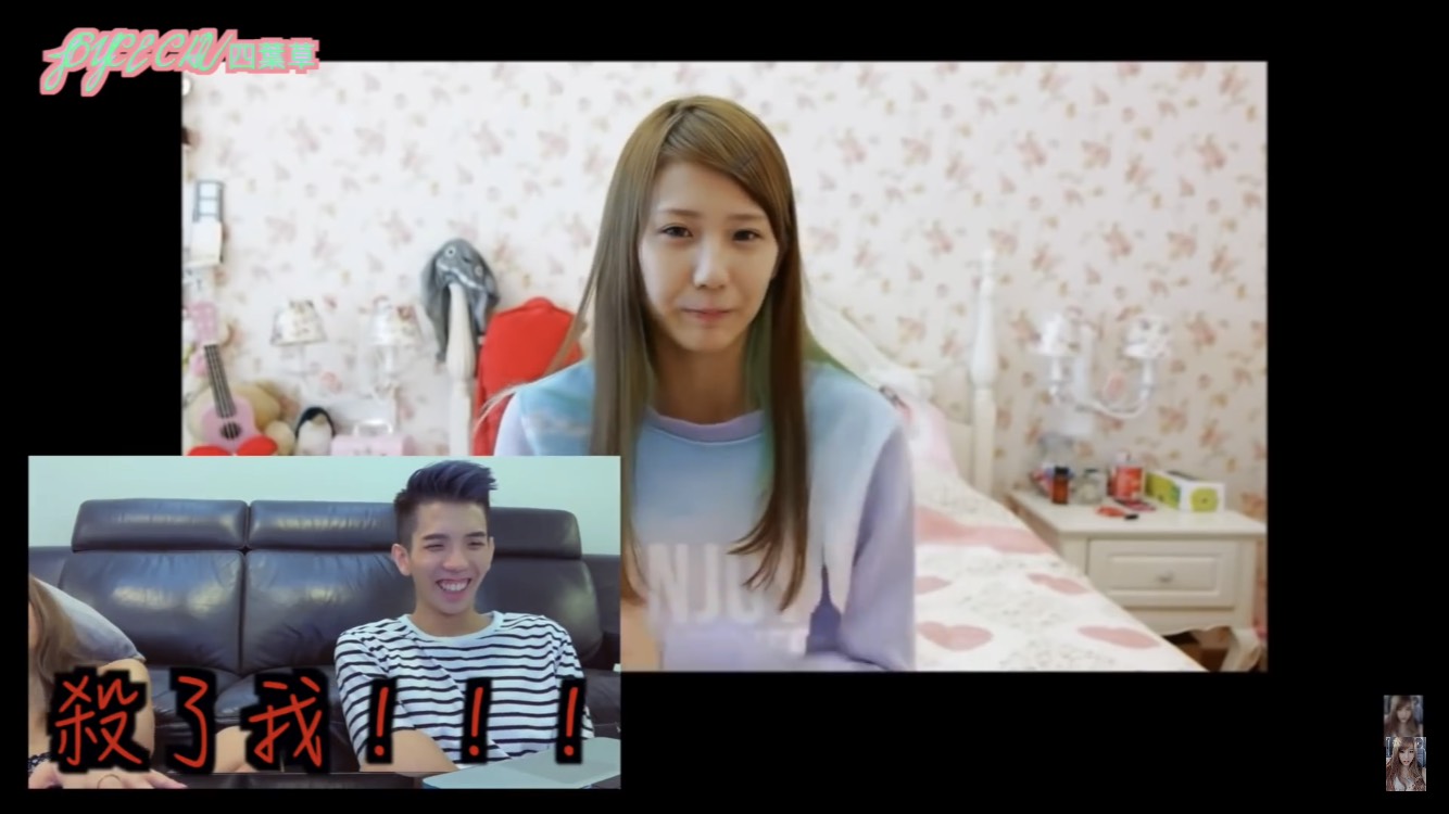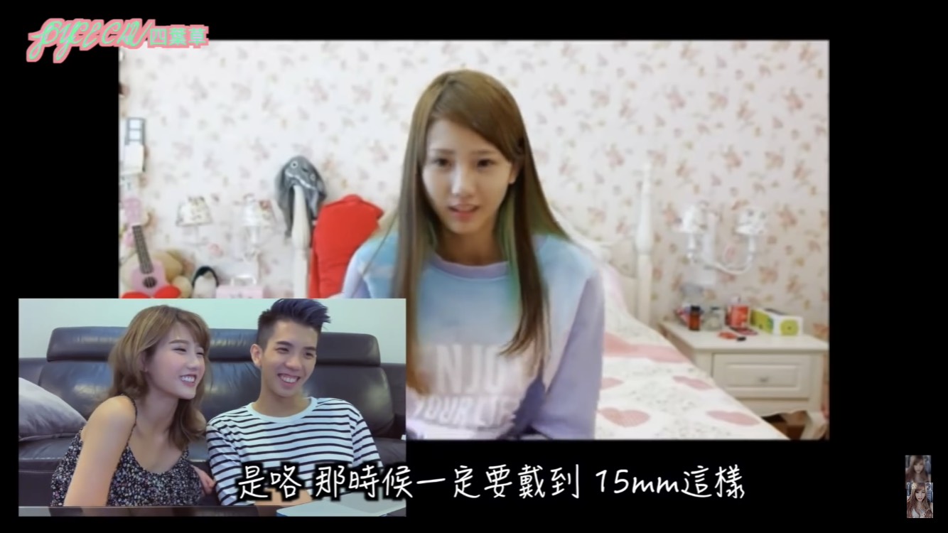 還有一個影片是Joey幫四葉草化妝,那時四葉草的隱形眼鏡直徑非常大,她提到當時「一定要戴到15mm」,幾乎快看不見眼白,而她在影片中一直胡言亂語,還做出各種奇葩姿勢,讓四葉草看了不斷叫過去的自己閉嘴,崩潰大喊「殺了我吧」!