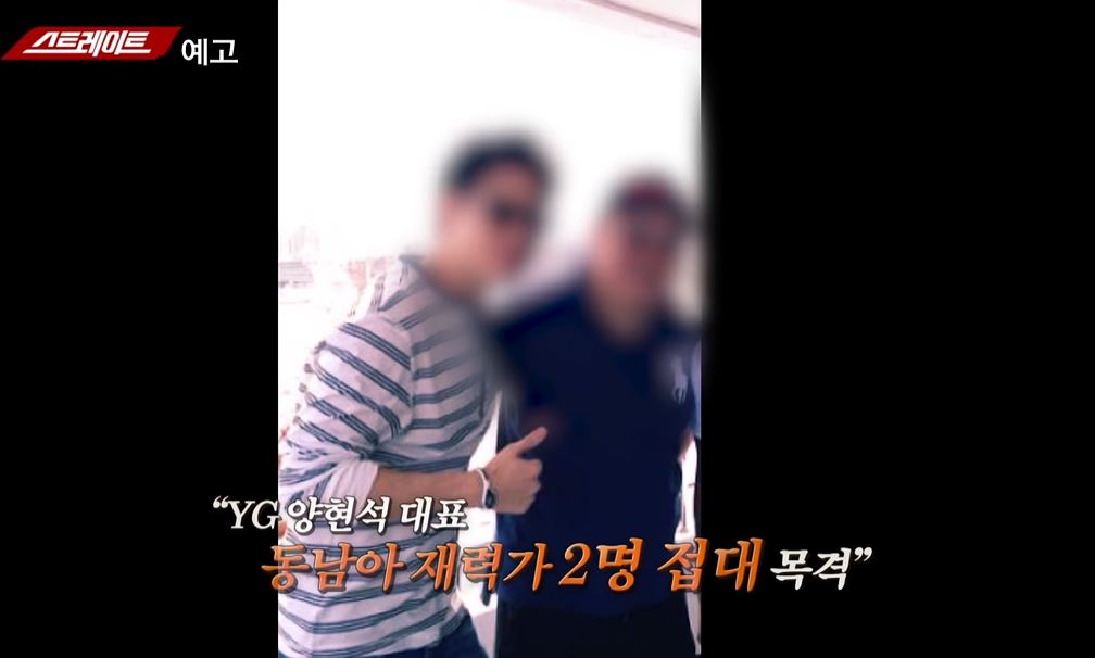 近期韓國電視台MBC以綜藝節目《探查企劃Straight》,報導經紀公司YG娛樂的社長梁鉉錫於2014年7月涉嫌性交易,更夥同旗下世界級的大咖,如今該藝人已出面接受訪談,而同飯局的馬來西亞富商也派出發言人針對性招待醜聞說明。
