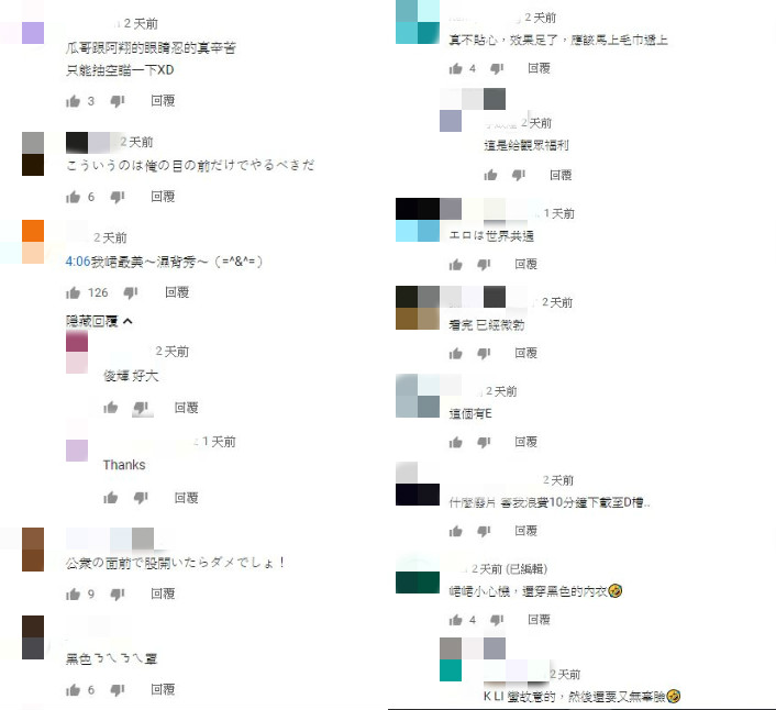 不過這畫面卻讓網友們看了好養眼:「糟糕阿翔幹的好」、「賞心悅目」,甚至還有人曝光粉絲清晰的視角,讓網友們大飽眼福直喊:「難怪草莓加煉乳最對味」、「阿翔有夠故意,不過這次原諒他」、「這衣服我給100分」。不過也有網友認為製作單位太不貼心了,「效果足了,應該馬上毛巾遞上」;但也有網友認為這是峮峮的小心機:「各取所需啦!要紅趁現在了!」