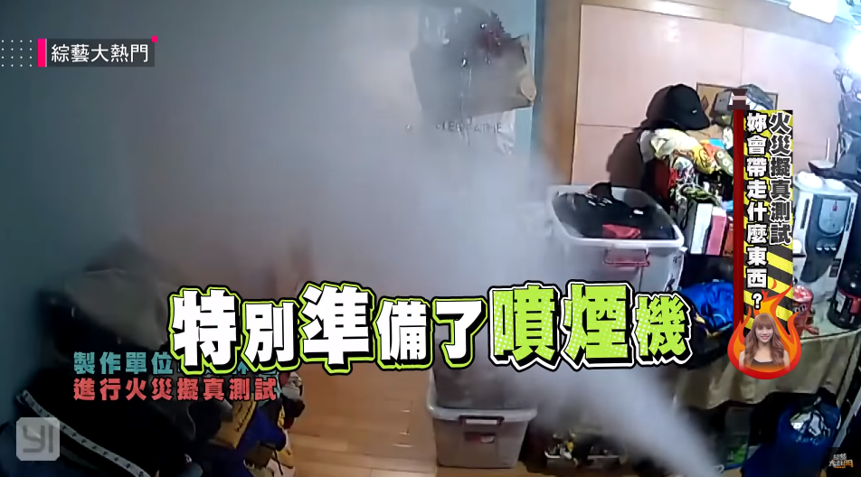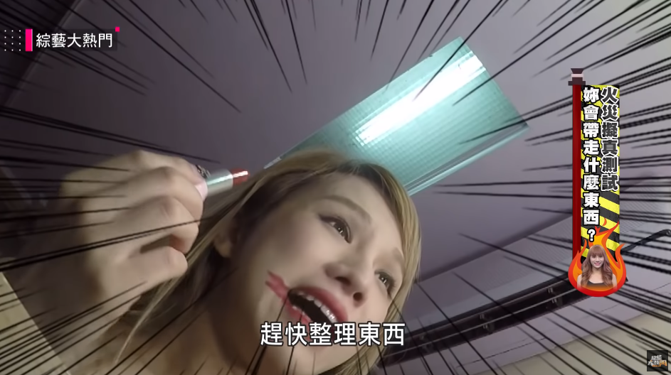《綜藝大熱門》最近播出最新一集,這次節目組特別串通了小A辣的好友林進,不僅在家中裝上隱藏攝影機,還另外準備了噴煙機,製造超逼真火災現場!只見小A辣原本還在化妝,林進突然驚呼:「A辣,外面火災,你快整理東西,煙很大,趕快整理東西」,緊張的氣氛讓小A辣口紅都塗出唇外,相當狼狽。
