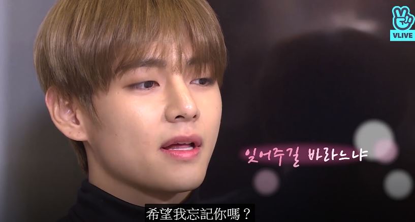 影片中,各個成員挑戰時不是忍不住笑場,就是當場忘詞,意外成為笑點,不過輪到V時,他竟自信說到已經背好所有台詞,現場充當導演的柾國一喊開始,V就一秒入戲。接著就模稜呂珍九深情款款的眼神說到「你要我忘記你嗎?你希望我把你忘了嗎?」、「對不起,我嘗試過了,但是我無法忘記你。」一字不漏還原經典片段,讓柾國當場嚇壞,也讓一旁成員全都讚賞封他是「金演員」。