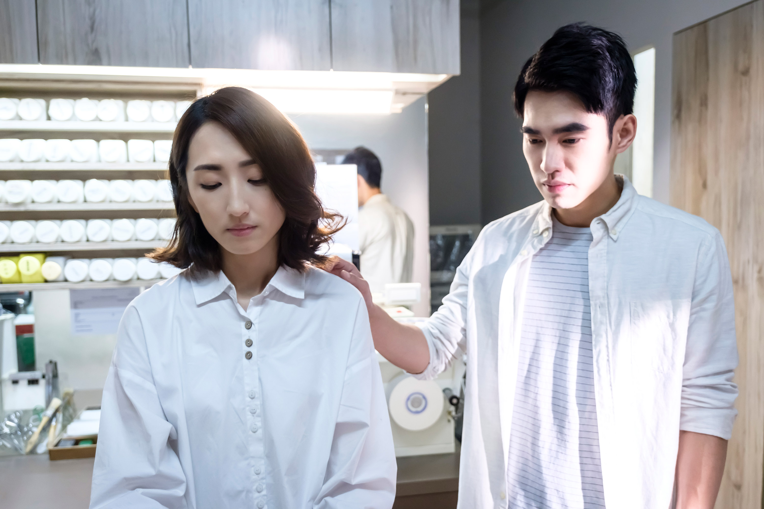 劇中柯佳嬿與吳岳擎養的狗Tiffany因為先天性瓣膜中膈缺損生病,到醫院就診時讓柯佳嬿相當緊張。柯佳嬿開玩笑說「Tiffany怎麼可以先殺青」,一開始她認為這場戲可能不會太難過,張書豪毫不留情說:「等一下看狗狗躺在那邊,再聽到生病說明,妳摸一摸牠很難說。」果然正式拍攝時柯佳嬿真情流露,眼淚流不停,張書豪聽到柯佳嬿鼻涕聲,趕緊將手舉起拍背安慰,導演一喊cut後張書豪笑說:「還不是被我說中,有養動物的人都會很有感覺。」當張書豪陪柯佳嬿回到家,看見狗狗遺物時,雖然兩人排戲常常不正經,正式拍攝張書豪對柯佳嬿說:「想牠就努力想,想哭就用力哭」催淚再加碼,張書豪說:「我自己都快哭了。」也得意讓柯佳嬿哭不停。