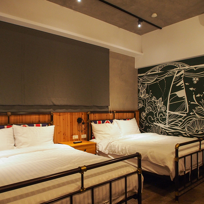 登登登~~~這就是我們工作人員的房間啦XD為什麼不是大海為伍呢?因為那間的床是併在一起的,我們感情太差不宜居住。但小編就是偏愛這種有個性的工業風房型啊!!!