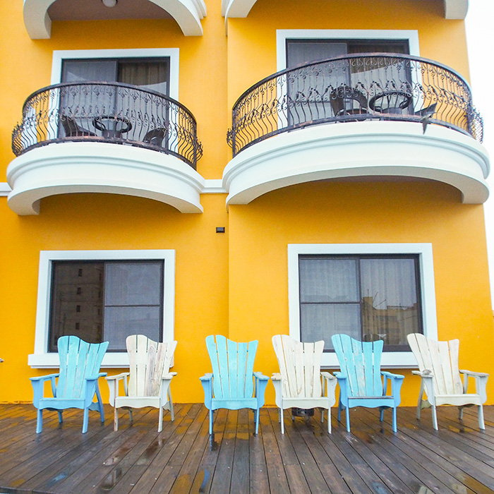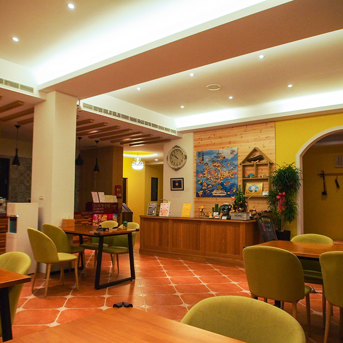 真的超像童話故事裡的小屋!!亮黃色配上水藍色的木椅,拍照起來可以騙朋友自己去國外玩XD看玩了白天的樣子,當然也要看看晚上長怎樣啊~~跟白天夢幻的感覺有點不同,暖色調的建築與裝潢,讓人格外安心,像家一樣的氛圍呢!