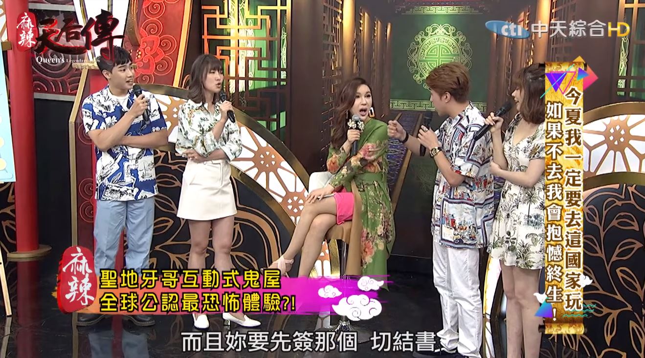不僅如此,大膽的丫頭原本還想去挑戰「全球公認最恐怖的鬼屋」,她在節目中興奮分享,在鬼屋當中會有人把你綁起來,然後矇住眼睛,還會不斷朝著你灑血,甚至「把你頭埋在水裡,讓你差點快死掉再把你拉起來。」驚悚程度無法想像。這個鬼屋相當知名,大根和李懿也都有聽過,甚至說這個鬼屋進去前都要簽生死狀切結書:「會有點不人道,像電影一樣玩你。」