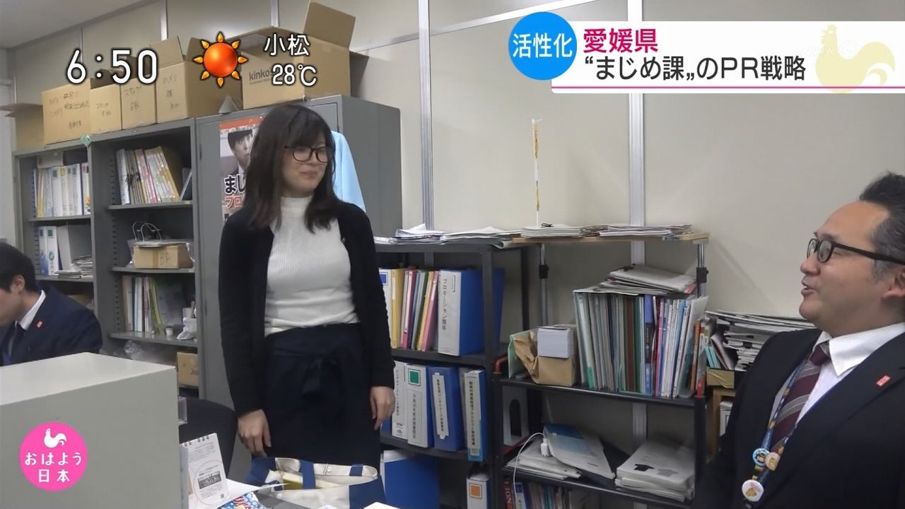 日本NHK新聞台的早晨節目《おはよう日本》(早安日本)從1993年就開始於晨間時段放送,歷史相當悠久,節目時常介紹日本各地的人物故事,而近期有一播放片段是講述愛媛縣為了發展觀光,公務部門成立新的團隊,希望在精心發展旅遊產品同時,也讓前來觀光的人感到真誠的心,不過節目在介紹公務部門的人員時,鏡頭竟然帶到一位身材無敵姣好的女公務員,意外成為網友討論的焦點,網友也驚呼「地方公部門竟然有這樣等級的妹子」。