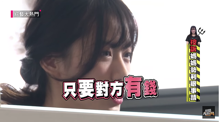 28日播出的節目中,葛子揚控訴媽媽金友莊勢力眼,她表示,每當她跟媽媽介紹自己的另一半,對方總先關心他的「經濟狀況O不OK」,或是在意他是做什麼工作的,「而不是先看他對我好不好」,或她是否喜歡對方。葛子揚表示,媽媽曾告訴她:「只要對方有錢,對你不好也沒關係」,讓她相當不能接受。