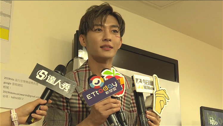 炎亞綸先是以一套黑灰色的高領造型現身,表演時換了一套格子西裝,但卻只穿了外套,裡面沒穿衣服,開深V露出精壯的好身材,現場被記者要求開扣子,炎亞綸笑說,釦子被縫起來了:「他們不讓我再下去!」