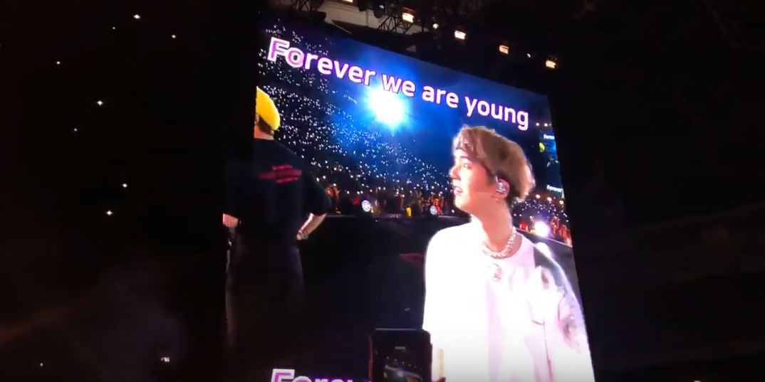BTS防彈少年團前進英國倫敦指標性場地「溫布利球場」,是許多歌手夢寐以求的大型場地,6萬張門票在開賣時秒殺,在當地也吹起BTS旋風,然而,在倫敦第二場演出,6萬名粉絲特別準備驚喜要送給眼前的偶像,合唱BTS《Young Forever》歌曲,該曲雖然不是他們的主打歌,但卻對BTS意義重大,讓原本差點解散的BTS,因為首歌重新凝聚,如今BTS在全球各地發光發熱。