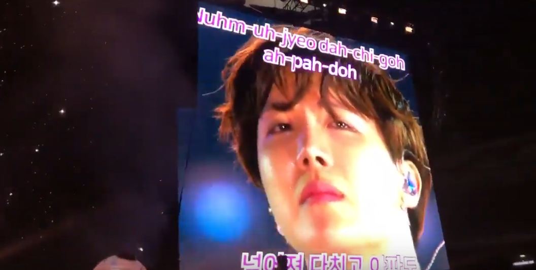 團員在台上聽到6萬名粉絲大合唱,當場露出驚訝的表情,下一秒更讓團員眼眶濕了,對長RM感動的說,「你們太犯規了!」JIMIN、柾國更瞬間淚崩,哭到唱不下去,JIMIN並對粉絲說:「這是帶BTS走出難關的歌曲」,然而,這段影片也隨著粉絲拍攝傳遞出去,感動全球阿米。