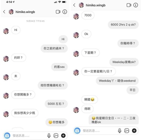 櫻姬在今年年初時被網友爆料在做「出租女友(PTGF)」的工作,意即男生逛街看電影、吃飯,然而最後大多都會提供性服務,過去有網友曾用IG私訊詢問價格,兩人先打招呼後就主動詢問網友「約咩?」,該網友也貼出多張對話的截圖,最終談好的價碼是2小時6000港幣(約24000台幣),並提供兩次性服務。在這次之前櫻姬也曾被爆料用小帳號約人,但開價是1小時4000港幣(約16000台幣)。