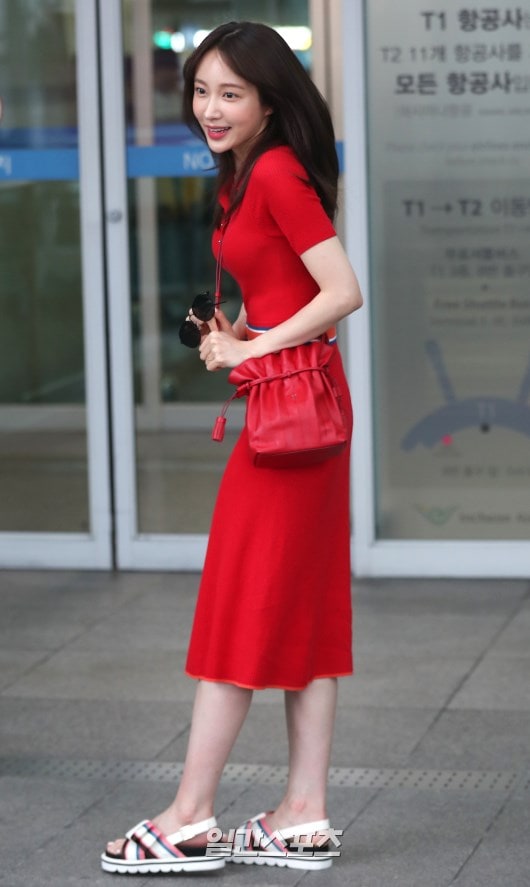 女團EXID成員Hani,4日晚間,現身韓國仁川機場準備飛往摩洛哥拍攝雜誌,而當天身穿紅色貼身洋裝的Hani,不僅凸顯白皙肌膚,也露出纖細且修長的四肢,臉上妝容也很淡雅,只是擦了鮮紅色的唇膏就相當有精神,而Hani的機場穿搭一曝光果然就成為韓國新聞榜上熱搜。