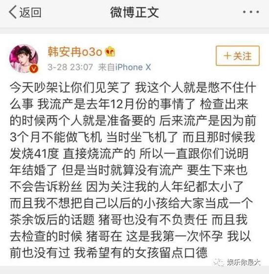 如今韓安冉第三度懷孕也終於順利產下一女,在今年6月15日也將和男友步入禮堂,雖然韓安冉目前年僅20歲,但她經歷了2次流產、32次整型,如此嚇人的行為也被網友們大力撻伐,認為她的三觀相當不正。